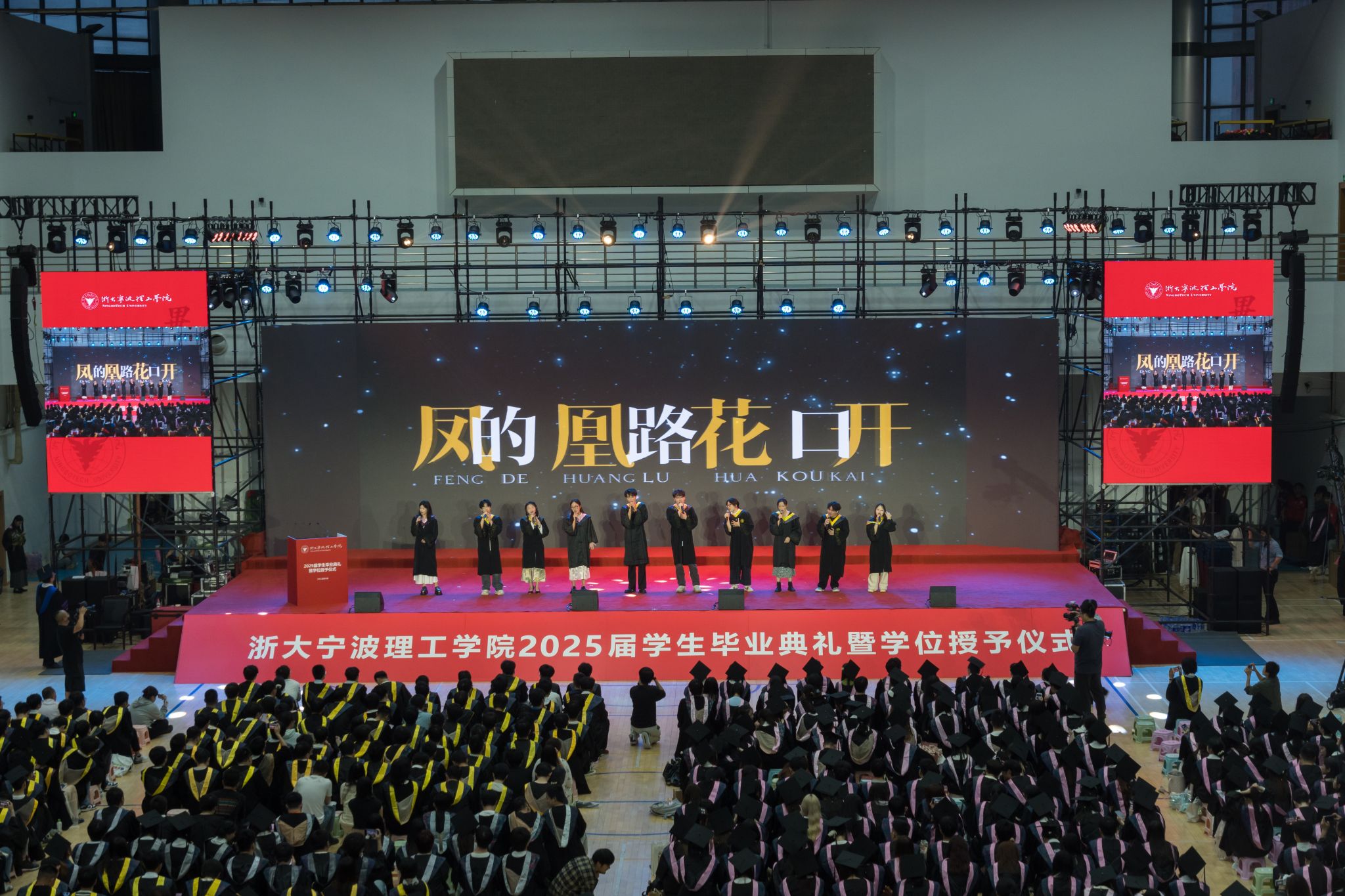 校长杨德仁院士对在场的毕业生致以诚挚的寄语:“做驭变求新的青春答卷人!”四年前,毕业生们在中国共产党成立100周年的喜庆时刻来到浙大宁理,与这所拥有“求是”精神血脉的校园不期而遇,在浙大宁理茁壮成长,成绩斐然。四年后,毕业生们迎来了一个加速变革的时代,将成为“与技术共处、与时代共舞”赛道的探界者。杨德仁校长表示,期待毕业生们:一是要精准识变,从变革浪潮中锚定人生航向;二是要主动求变,于未知深水区勇闯创新蓝海;三是要科学应变,在复杂困局中开辟发展通途。主动学习、持续思考,将“识变”的能力内化为成长的基石;永不言弃,让每一次对舒适区的突破,都成为锻造硬核实力的熔炉;让每一次精准应变的抉择,都成为丈量成长的刻度,不断提升应变能力,让每一回从容破局的智慧,都化作滋养心灵的甘露。祝愿毕业生们:以“识变”之清醒、“求变”之果敢、“应变”之智慧,在历史的卷轴上挥毫泼墨,绘就精彩人生!
