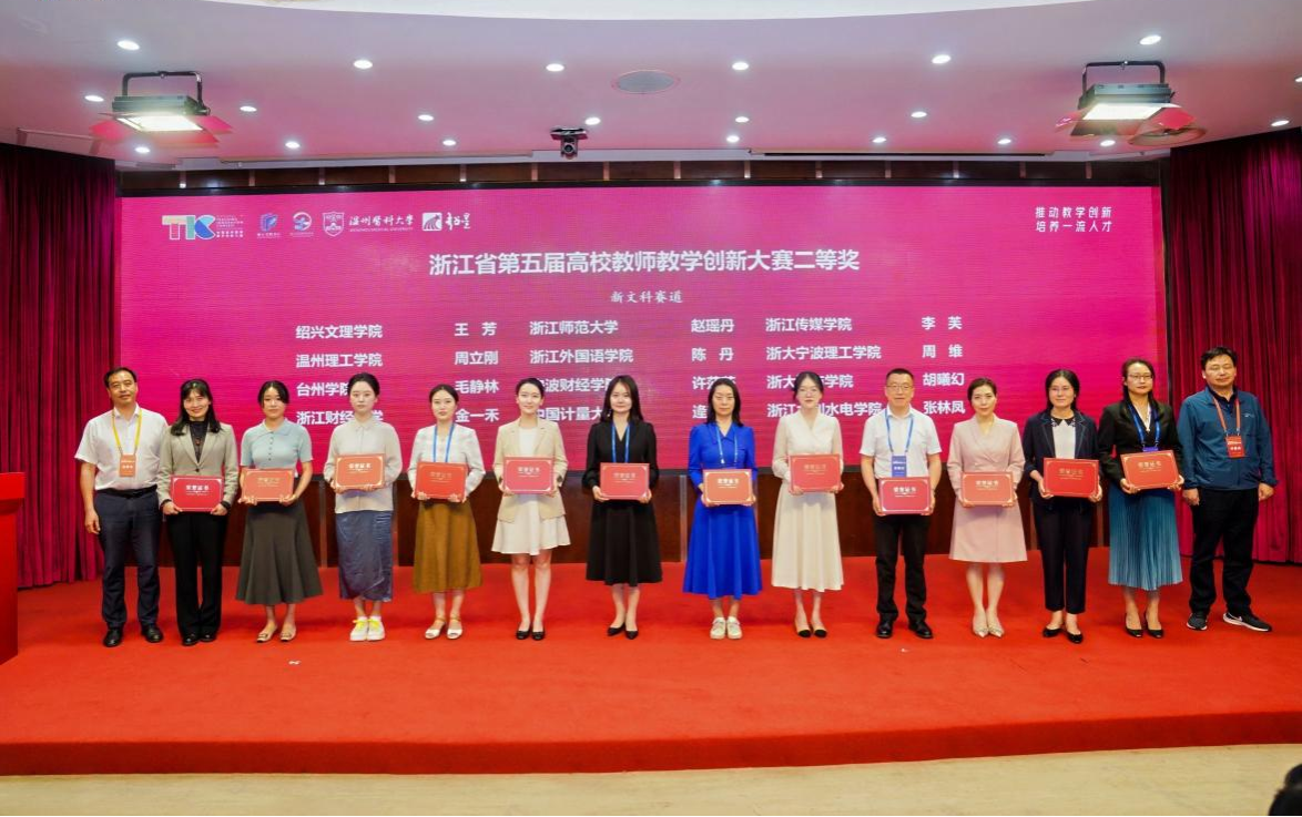5月24日,浙江省第五届高校教师教学创新大赛在温州医科大学落下帷幕。我校教师团队以优异表现创下最佳赛绩:数据学院沈洁琼老师团队摘得基础课程中级及以下组一等奖,实现我校在省教创赛一等奖的零突破;外语学院周维老师团队斩获新文科中级及以下组二等奖,彰显教学创新实力。此外,周宁老师、李黎明老师、董小燕老师、张玮老师四位教师团队分获产教融合组、新工科中级及以下组、课程思政正高组及新工科正高组三等奖。