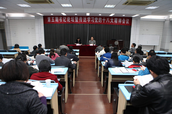 11月29日下午,学校召开第五期书记论坛暨学习传达党的十八大精神会议。校党委书记费英勤就党的十八大精神作了传达和解读,全体总支书记、支部书记参加了会议。会议由党委副书记陈小兰主持。