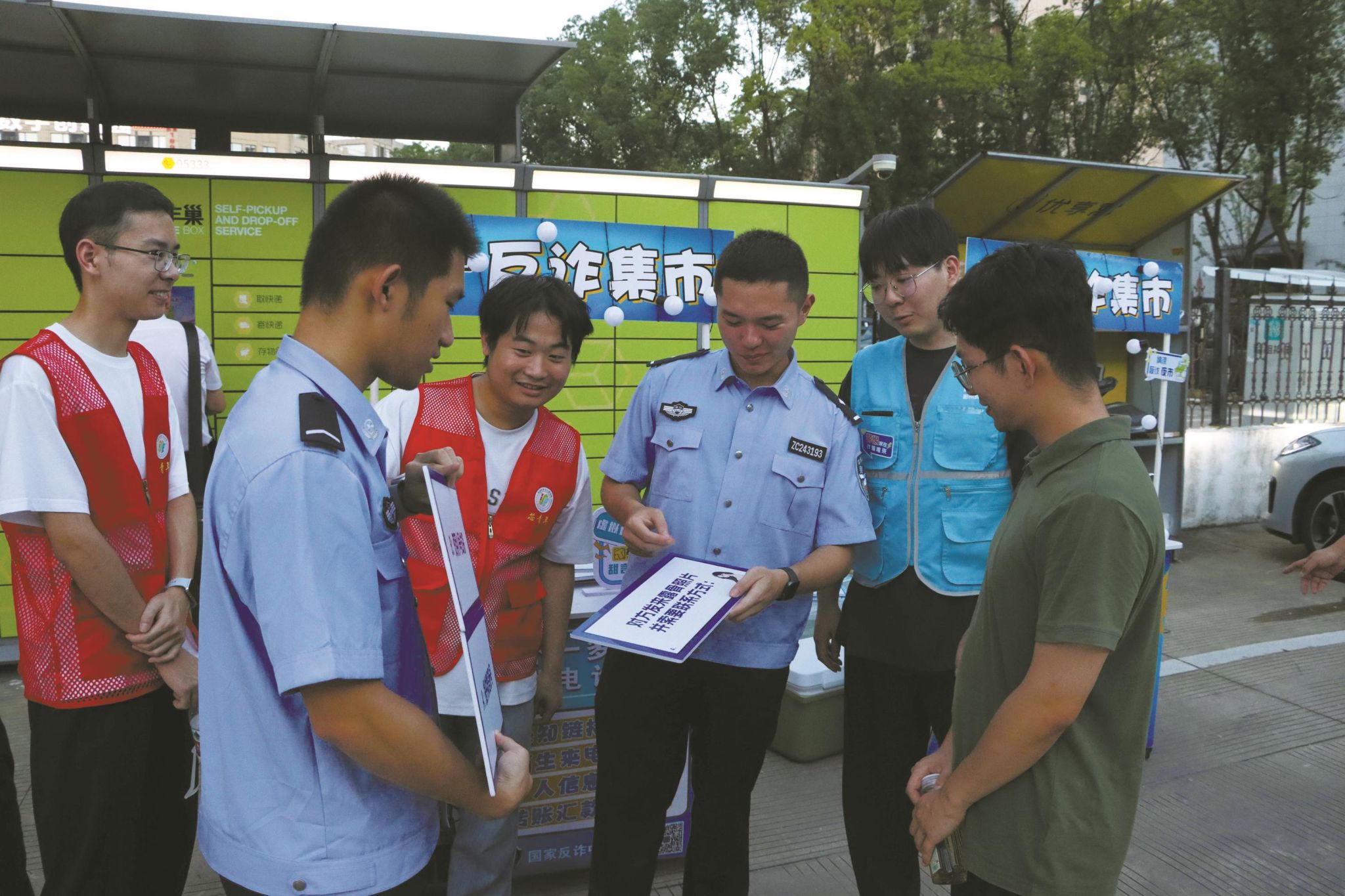 “这些贴纸就像防骗小卫士,时刻提醒您谨防诈骗。”实习民警许焱哲将特制的反诈贴纸贴在市民手机背面。现场还设置了反诈宣传册发放区、APP安装指导区等,民警手把手教市民使用“国家反诈中心”APP识别诈骗链接。