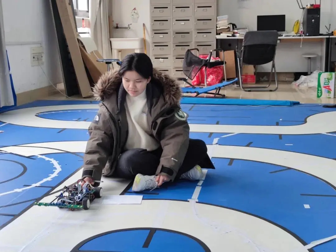 全国飞思卡尔智能车大赛——刘慕洁口中可爱有趣的“小车比赛”,是指在IAR软件上进行代码编写,利用下载器下载到芯片上,再通过传感器反馈参数,以此来控制小车在赛道上的运行轨迹的比赛项目。由于之前使用的开发系统过于老旧,这一年团队导师决定更换智能车研发所需的一整套材料。这也就意味着刘慕洁与团队伙伴无法再“站在前人的肩膀上”,只能在新的起点上进行探索。功夫不负有心人,她和团队伙伴在小车芯片上引入电磁模块以及超声波模块,并调节各个传感器的中断时间、调用的优先级等,以保证传感器能够完整、准确地采集数据,使智能车突破障碍,快速前行。回忆起那段咬紧牙关攻克困难的时期,刘慕洁很感慨:“比赛前每天跪在地上研究智能车的传感器,直至赛后很长一段时间内,膝盖还仍然隐隐发酸、作痛。”
