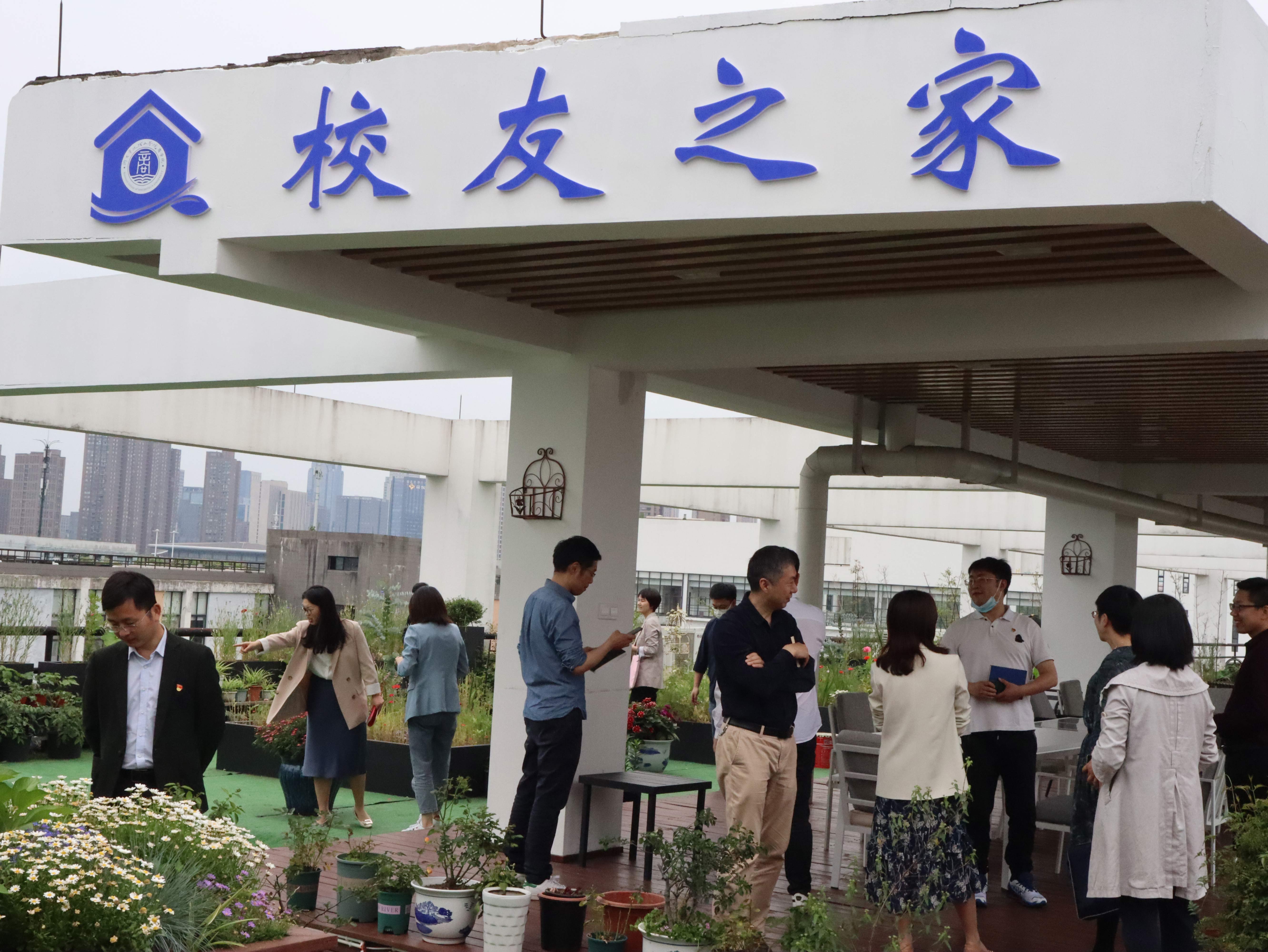 会前,全体参会人员走访参观了商学院学生党员亮显文化墙和“花园式”校友之家。