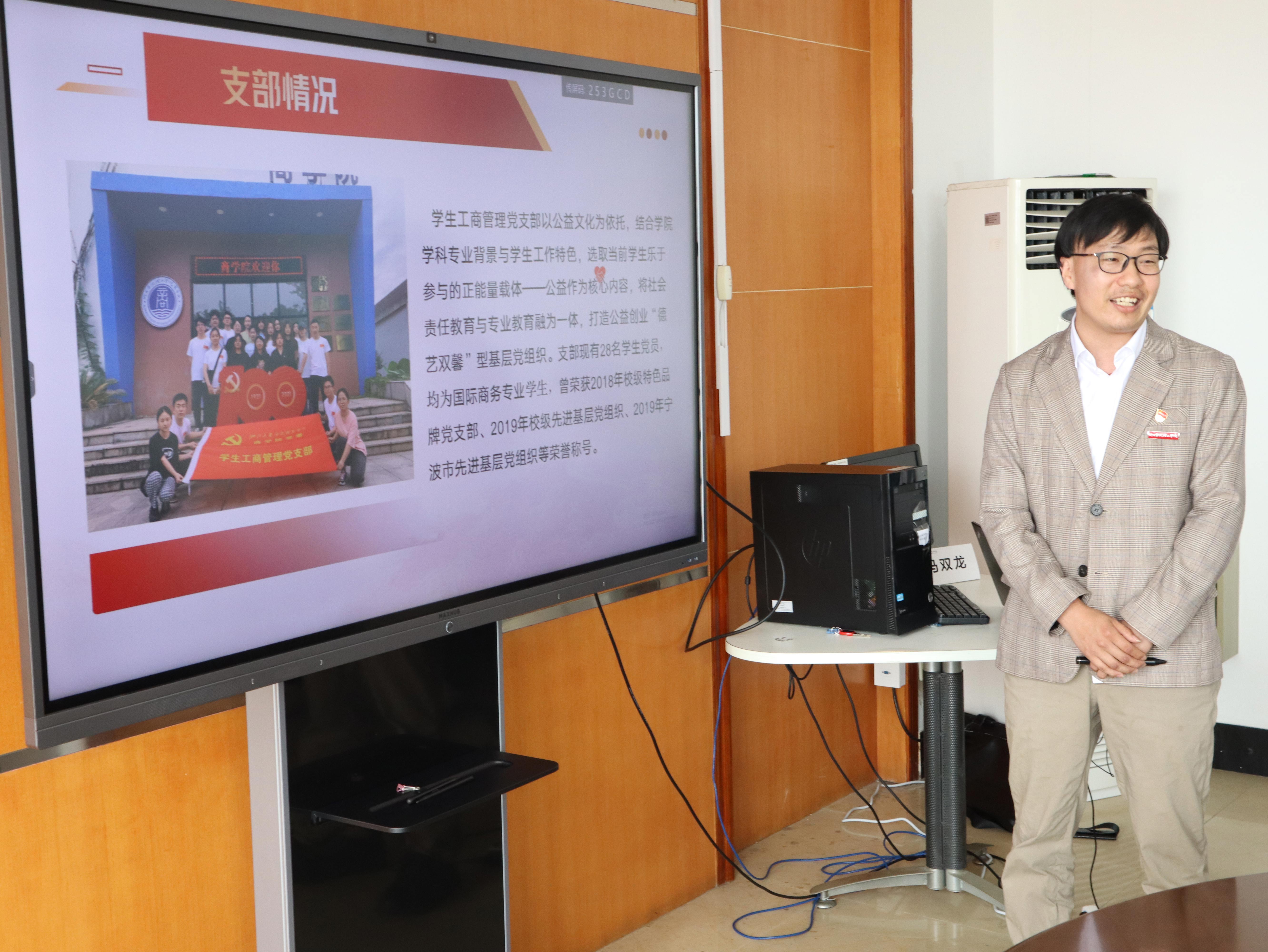 接着,学生工商管理党支部书记李渊围绕“公益育人”党建工作模式进行交流,从支部“五微”工作法实施、实践育人打造党建精品、坚持教育学习长效机制等三方面介绍了支部建设情况。