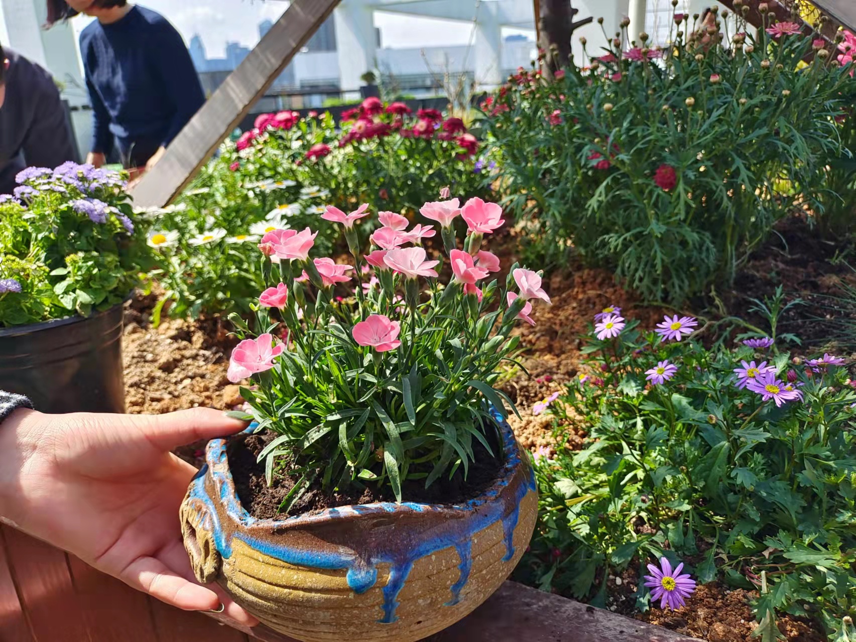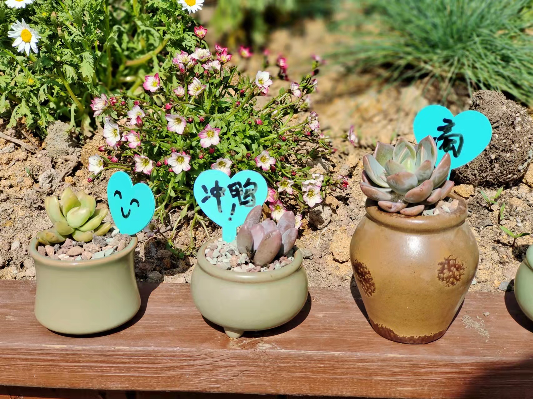 活动开始,教职工们学习了绿植和蔬菜种植的知识,了解了绿植和蔬菜种植养护的浇水、日照、病虫害防治等日常知识和不同品种的养护要点。大家挑选了喜欢的多肉植物和蔬菜花木种子开始栽种。很多老师是第一次种绿植和蔬菜,显得十分兴奋。大家纷纷认领种植一盆绿植或蔬菜。从栽培土壤的选择到播种、填土、浇水、插名牌等各个环节,都进行得非常认真。经过一段时间的劳动,商学院的天台花园上出现了几十个摆放整齐的花盆,里面的各色种子即将在春光下萌发成长,让天台花园更加美丽。在女教工们的巧手栽种下,一盆盆小巧别致的多肉盆栽,也将成为老师们案前美好的点缀。