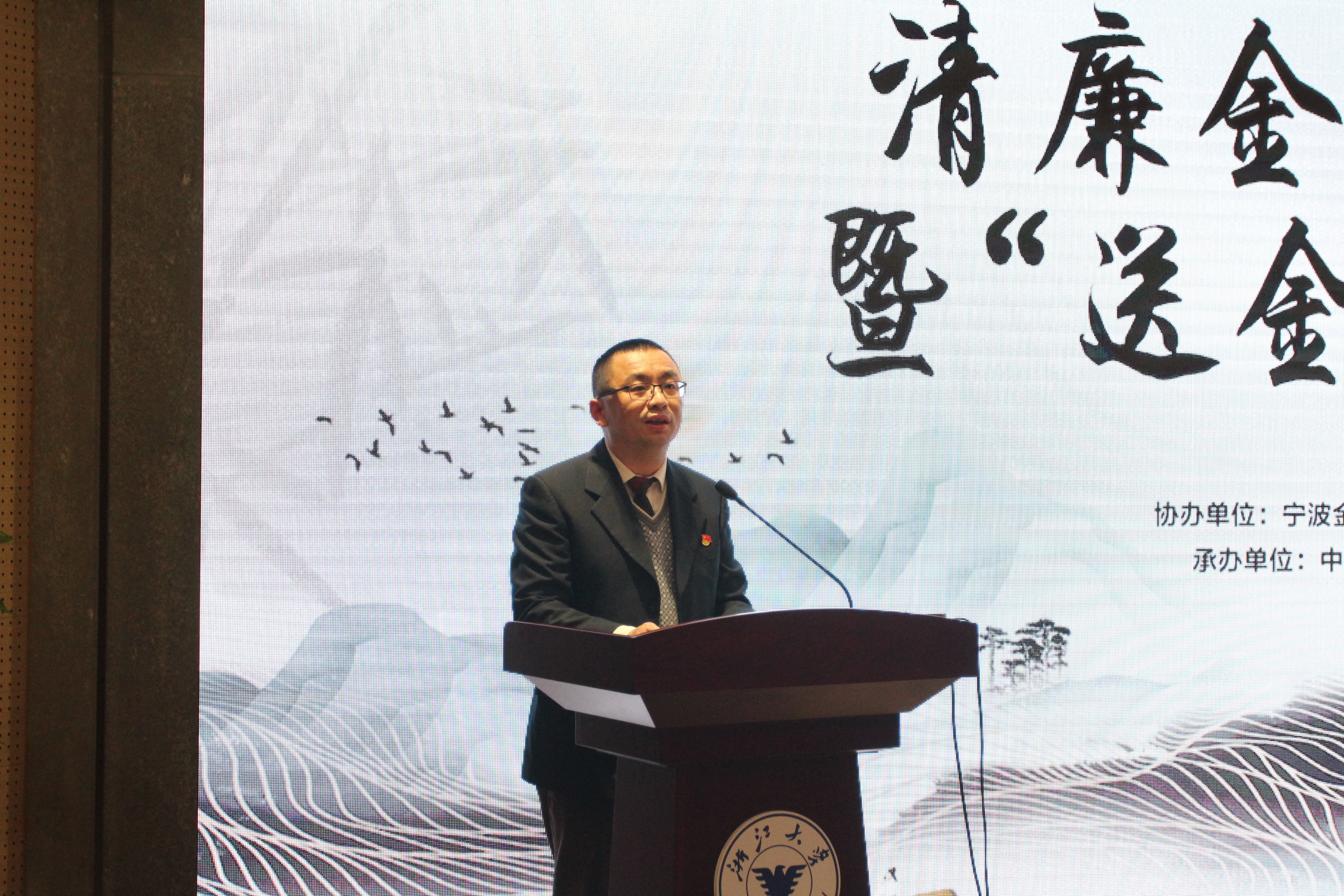 接着,商学院党委副书记、纪委书记吴琼代表活动承办方致辞。她表示,金融安全是国家安全的重要组成部分,清廉金融文化建设文化始终是一个重要的课题。青年学生正处在世界观、价值观和人生观形成的关键时刻,在学生步入职场前,将廉洁思想根植于学生群体当中,引导青年学生树立坚定的廉洁信念,十分有必要。高校承担着为党和国家金融事业以及宁波的清廉文化建设培养既有廉洁操守又有知识技能的金融力量的重任,需要各方的大力支持。
