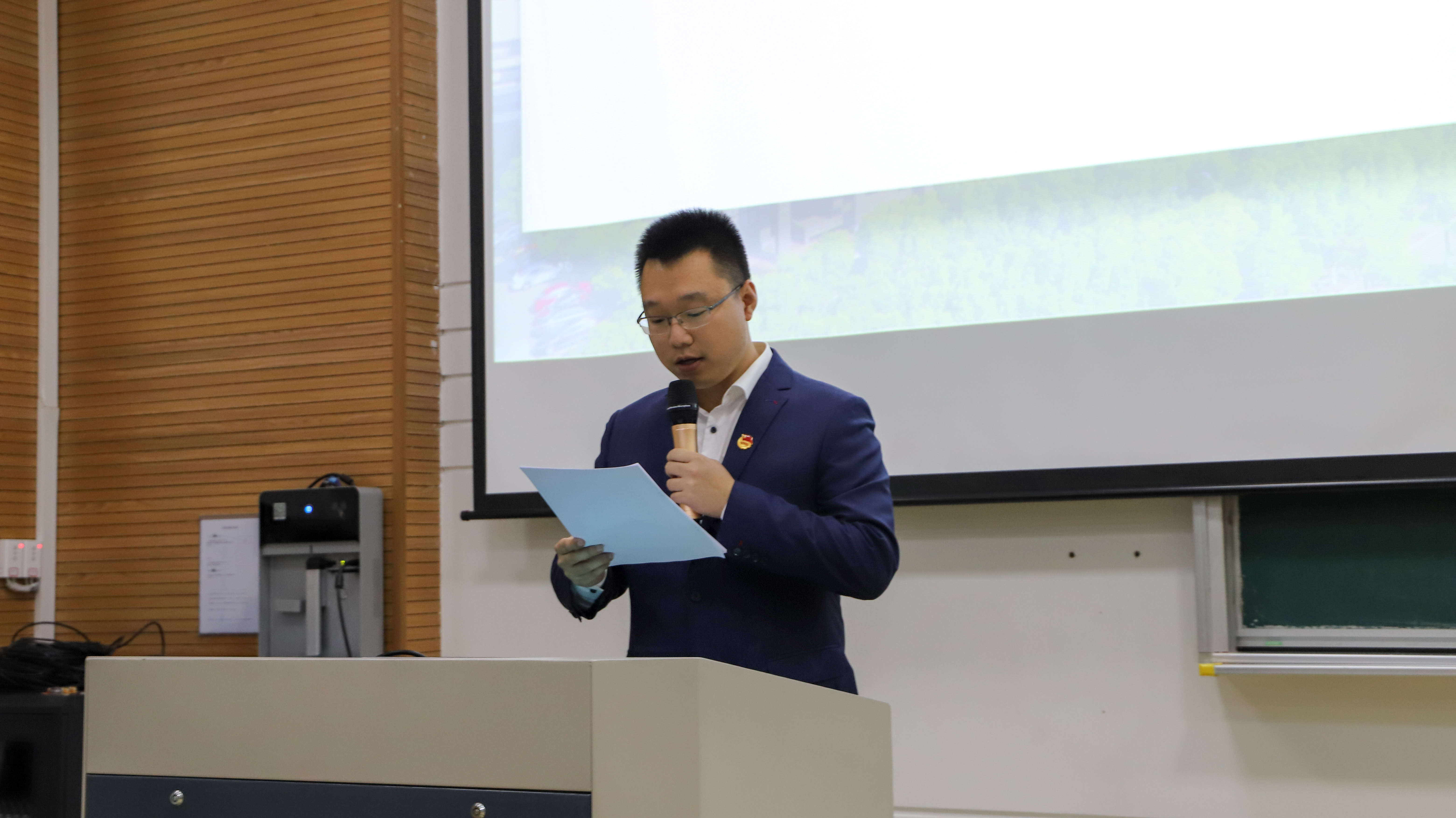 在庄严的奏唱国歌声中,大会正式开始。学院党委副书记、纪委书记胡鹿鸣宣读了《中共浙江大学宁波理工学院传媒与设计学院委员会关于曲昊杨等2位同志任职(任免)的通知》。随后,学院团委书记曲昊杨上台宣读《共青团浙江大学宁波理工学院传媒与设计学院委员会关于盛水舟等学生干部任命的决定》,并表达了对他们的殷切期望。伴随着热烈的掌声,新任学生组织干部们依次上台,由四位出席大会的老师分别为他们颁发聘书、合影留念。