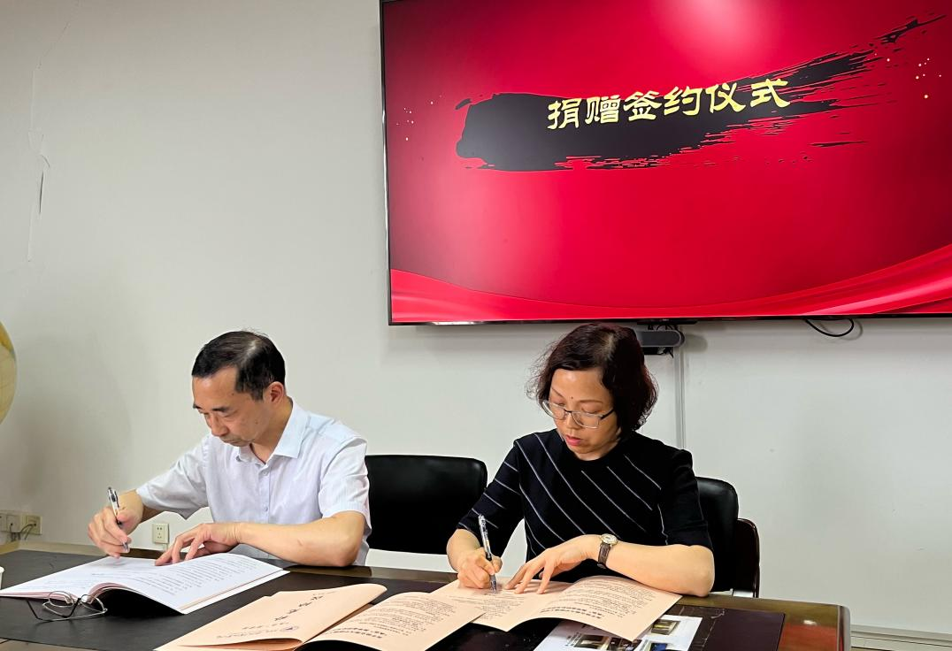在与会人员的共同见证下,陈佩菊和童微星分别在协议书上签字并现场捐赠。学校学生处副处长赵涵向陈佩菊颁发了捐赠证书并授牌实践教学基地。