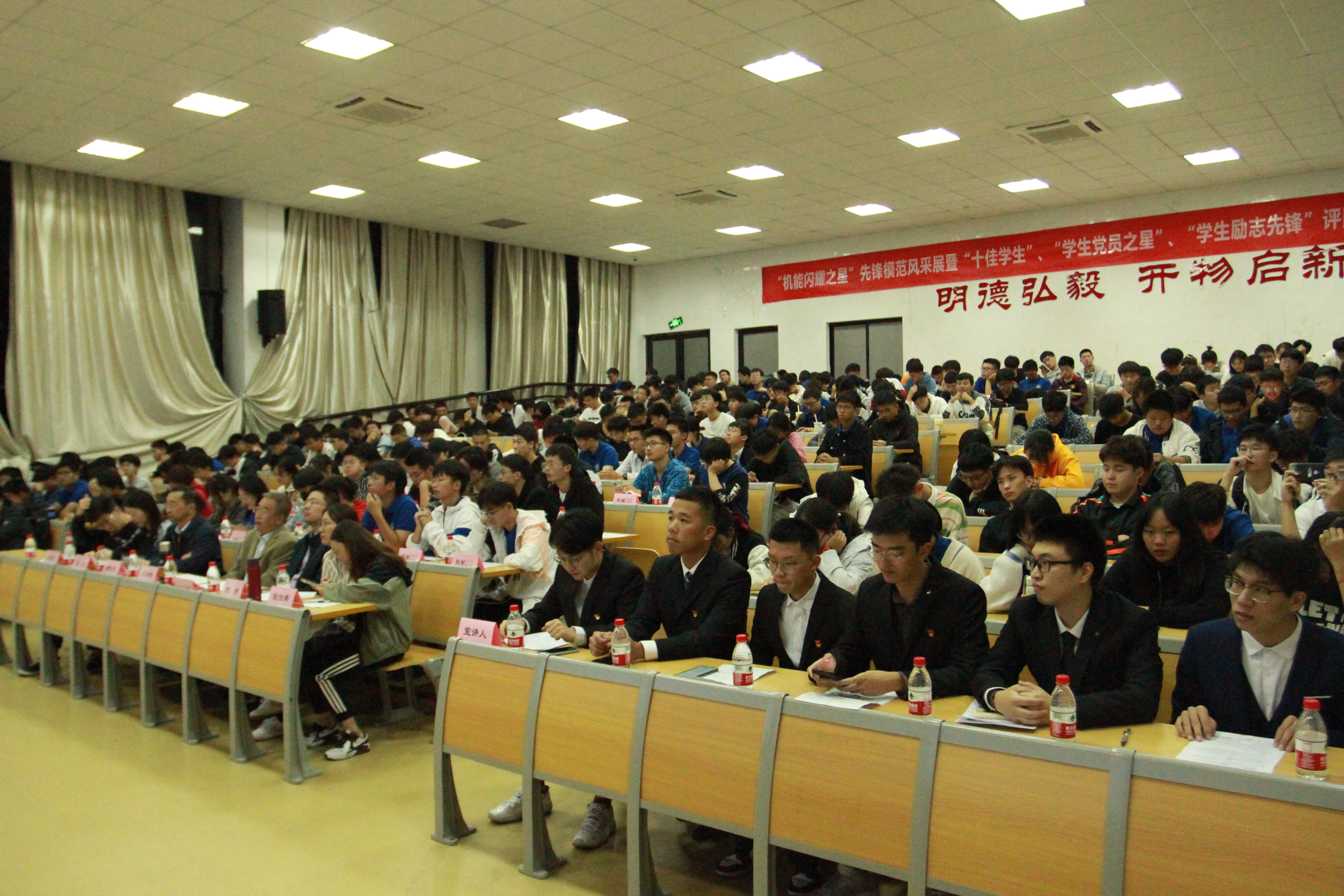 为全面落实立德树人根本任务,大力弘扬社会主义核心价值观,培养广大学生成为德智体美劳全面发展的高素质应用创新型人才,10月29日晚6点,机能学院举行“机闪耀之星”先锋模范风采展暨“十佳学生”、“学生党员之星”、“学生励志先锋”评比会。机能学院党委书记、副院长童微星老师,党委副书记、纪委书记王晶老师,学生发展委员会委员沈祥智老师、林躜老师,学工办思政副主管董海云老师,学工办辅导员阮佳蒂、曹燕老师以及来自学院27个班级的学生代表出席会议并担任评委。机能学院全体大一新生观摩评比展示会。