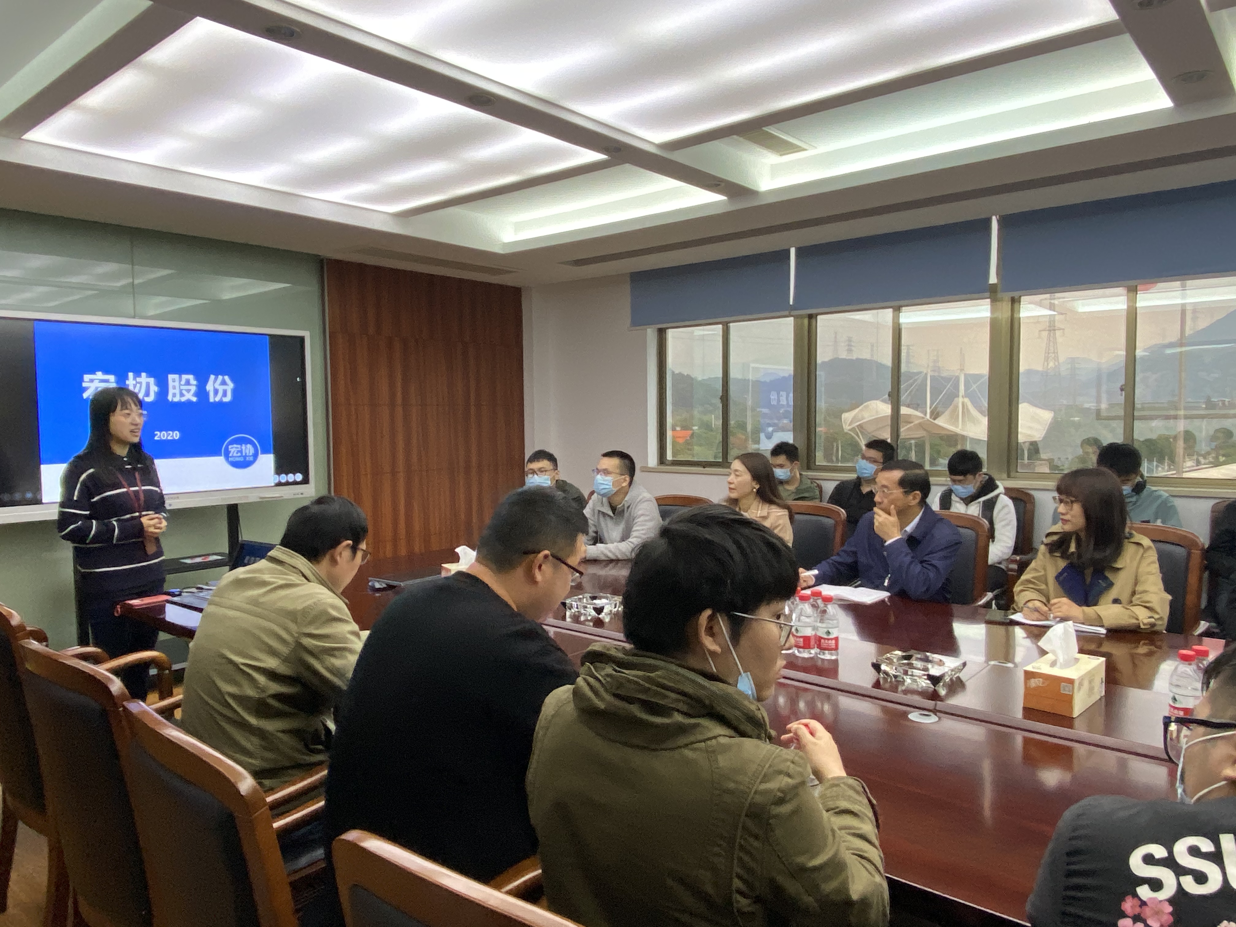 随后,童微星一行走访了宁波宏协股份有限公司。公司人力资源部经理虞盼攀对学院师生们到来走访表示热烈欢迎,从公司文化、发展历程、产品特色、人才培养、招聘需求等方面介绍企业,高度赞扬了学校毕业生综合素质好、吃苦耐劳、务实肯干的良好品质。童微星代表学院对企业连续6年来设立奖学金表示感谢,双方就人才培养进行交流,校友代表何天磊分享了岗位上的经历和体会。