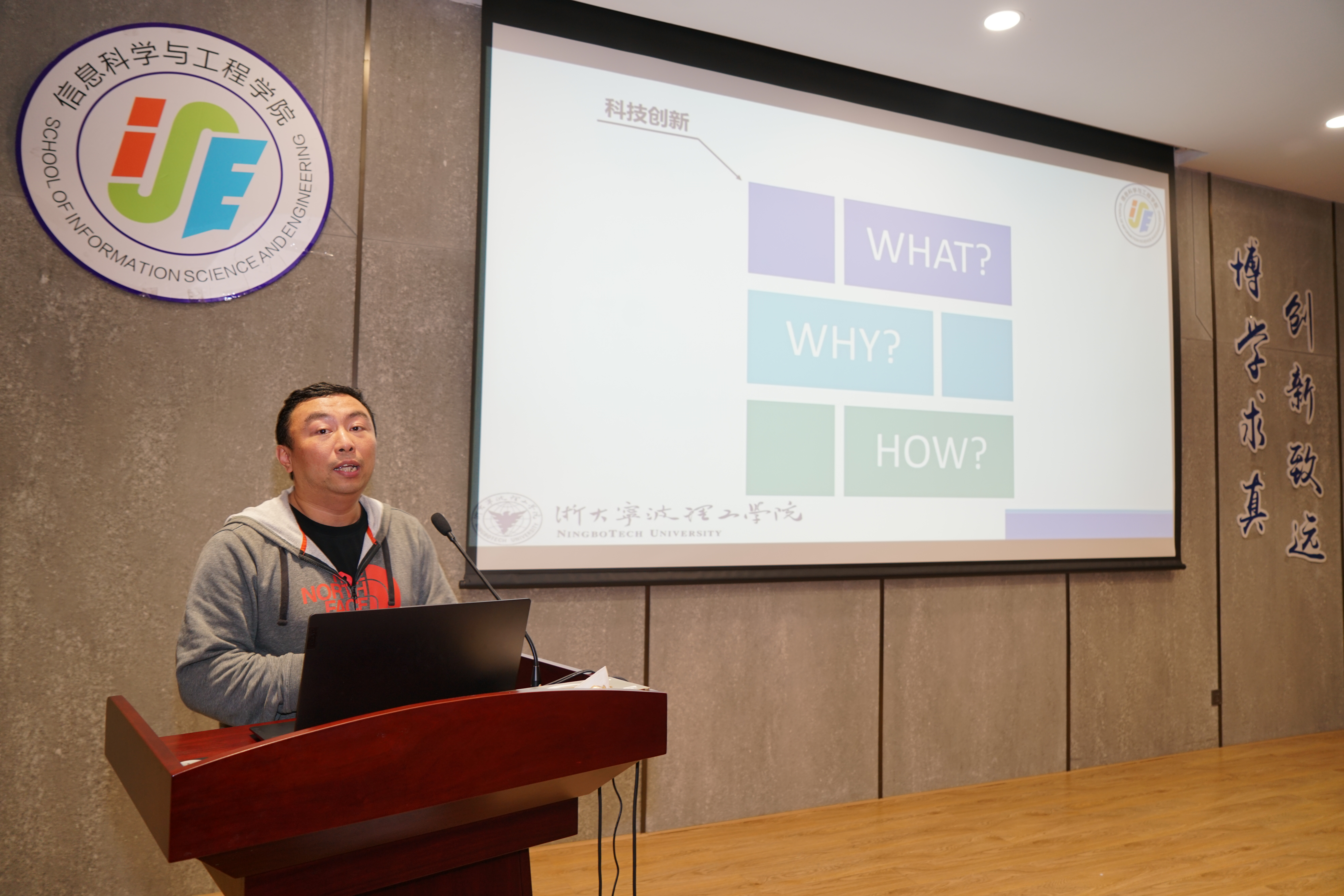 学院副院长裘君从什么是科技创新活动、为什么参加科技创新活动以及如何做好科技创新活动三个方面展开,详细介绍了校院层面的各类创新大赛和专业学科竞赛。他通过往年冠军项目的案例分析,结合专业特色,给同学们提出“多看、多想、多练”三点建议,鼓励同学们提升大学生实践动手能力,积极开展学科竞赛活动,不断提高学生实践创新能力。