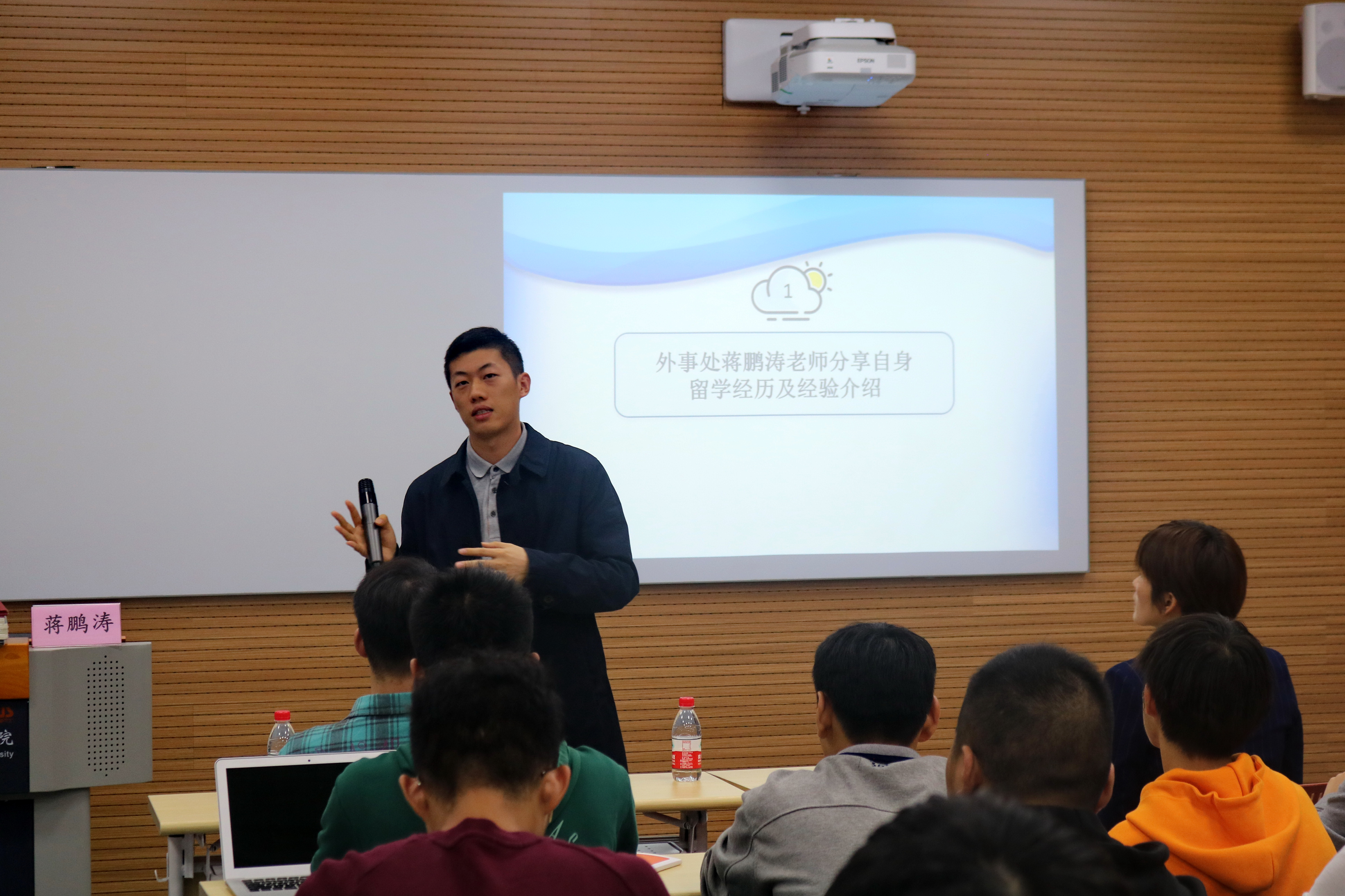 首先,程萌副处长从项目类型、合作院校、各类政策、签证办理以及在外注意事项等方面对学生出国境交流做了细致入微的介绍说明。他指出:“要有世界观,先要观世界。国际化是学生们提升自我、发展自我的重要环节,同学们如果想要参与国际交流,需及早规划并持之以恒去努力”。