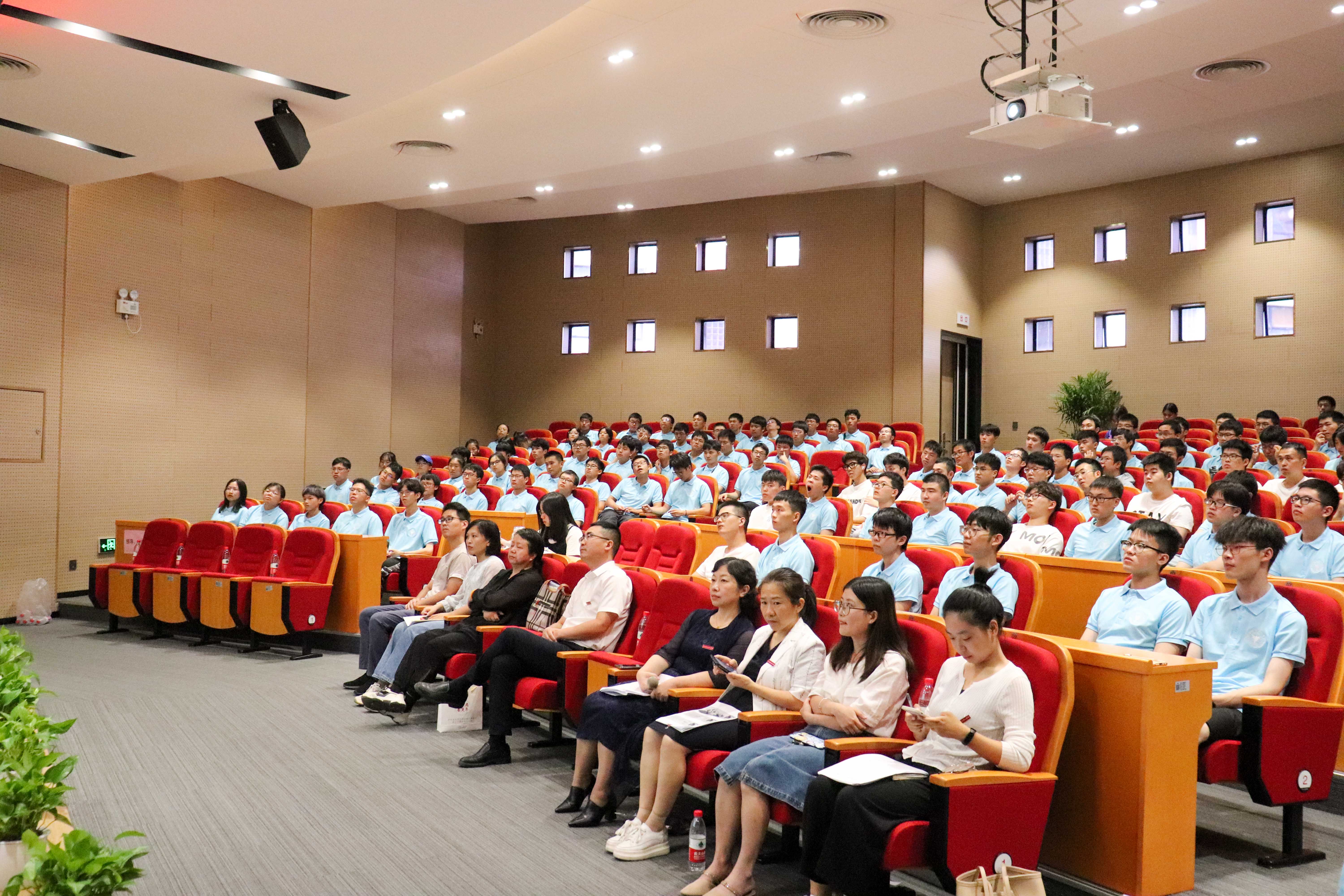 院长庞超逸老师介绍学院概况,重点讲解师资队伍、特色实验室和科研成果,他寄语新生要在大学中不断提升自身价值,充实度过人生中最美好的时光。