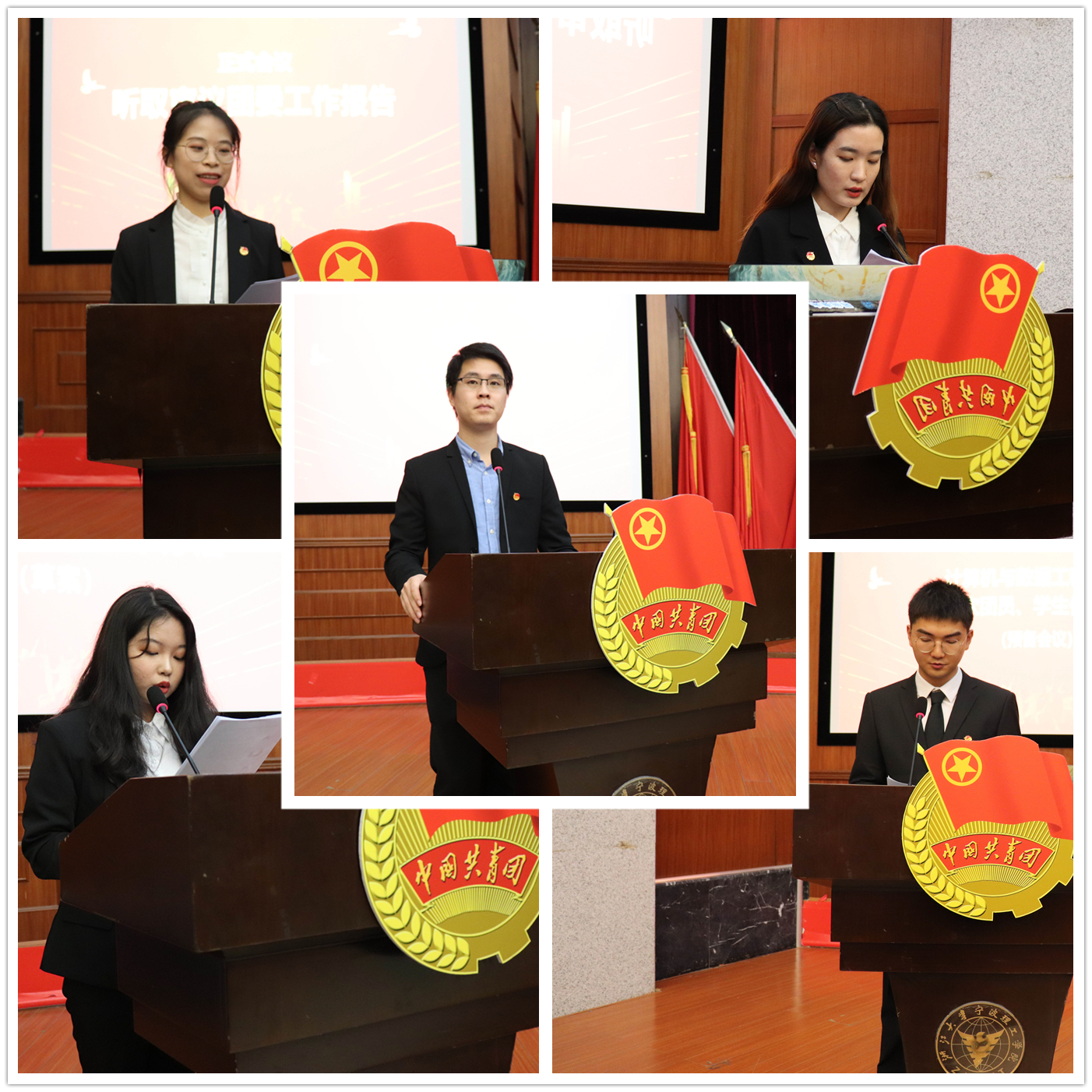 马炜栋老师和邢百蓥同学分别作团委工作报告、学生会工作报告,回顾了近几年来学院共青团、学生会的工作成果,并部署未来的工作任务。