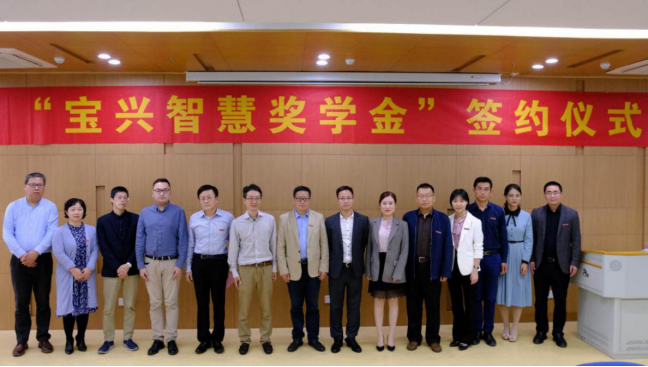 在全场嘉宾、师生代表们的见证下,校教育发展基金会秘书长陈美芳与浙江宝兴智慧城市建设有限公司副总经理周浩签署协议书,校教育发展基金会理事长鲁东明接受宝兴智慧公司45万元的捐赠支票,标志着 “宝兴智慧奖学金”正式成立。