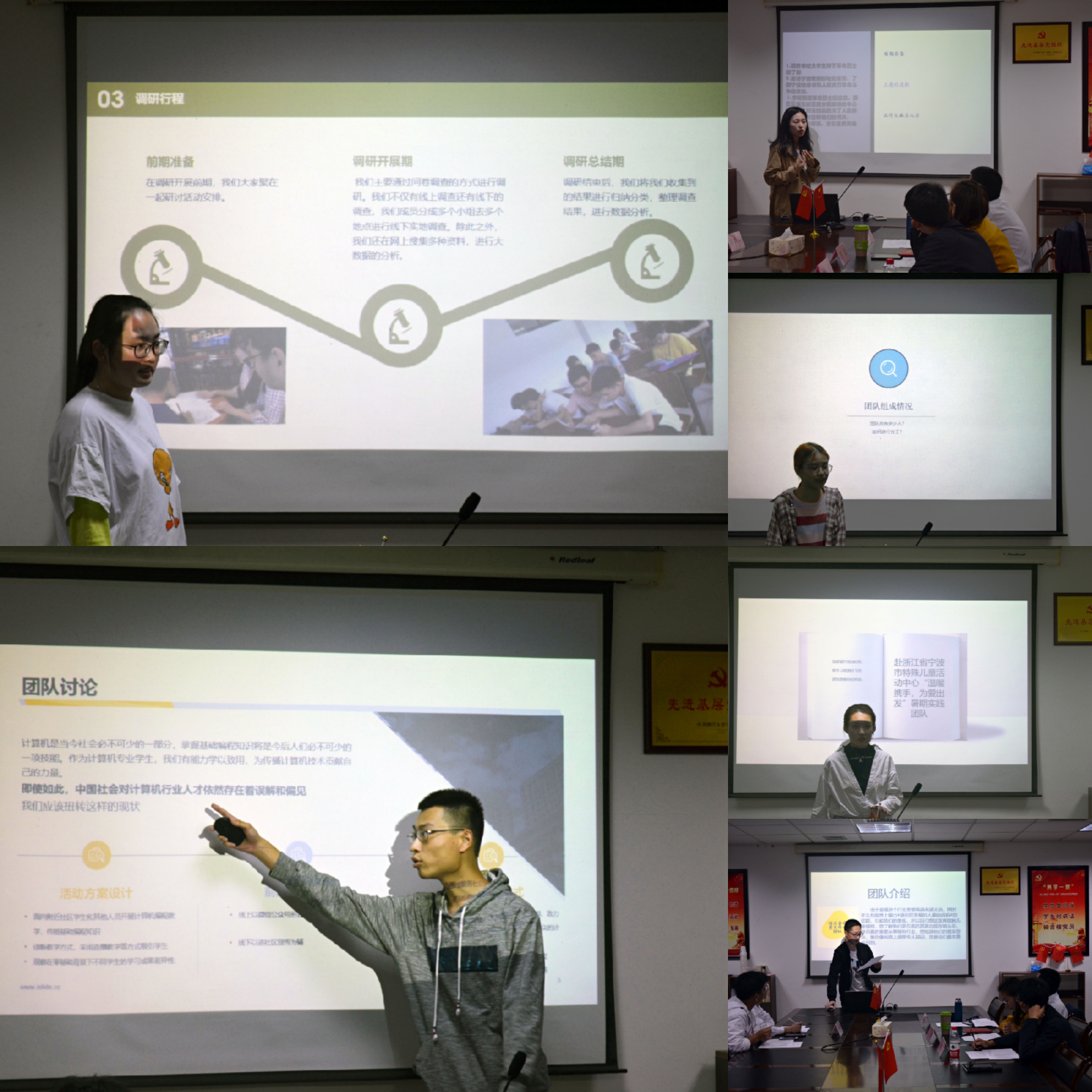 暑期社会实践团队依次进行团队展示,对此次社会实践活动进行总结,内容包括创意形成、准备工作、感想感言以及实践成果等。之后,评委老师分别从ppt展示情况、活动开展情况等方面给出看法和建议,提出不足。比赛结束后,马炜栋老师进行总结,他祝贺同学们圆满完成此次暑期社会实践活动,并希望同学们继续努力,将此次实践活动的收获融入到今后的学习生活中。最后,由学生会主席杨泽同学宣布了2019年暑期社会实践活动优秀团队名单。