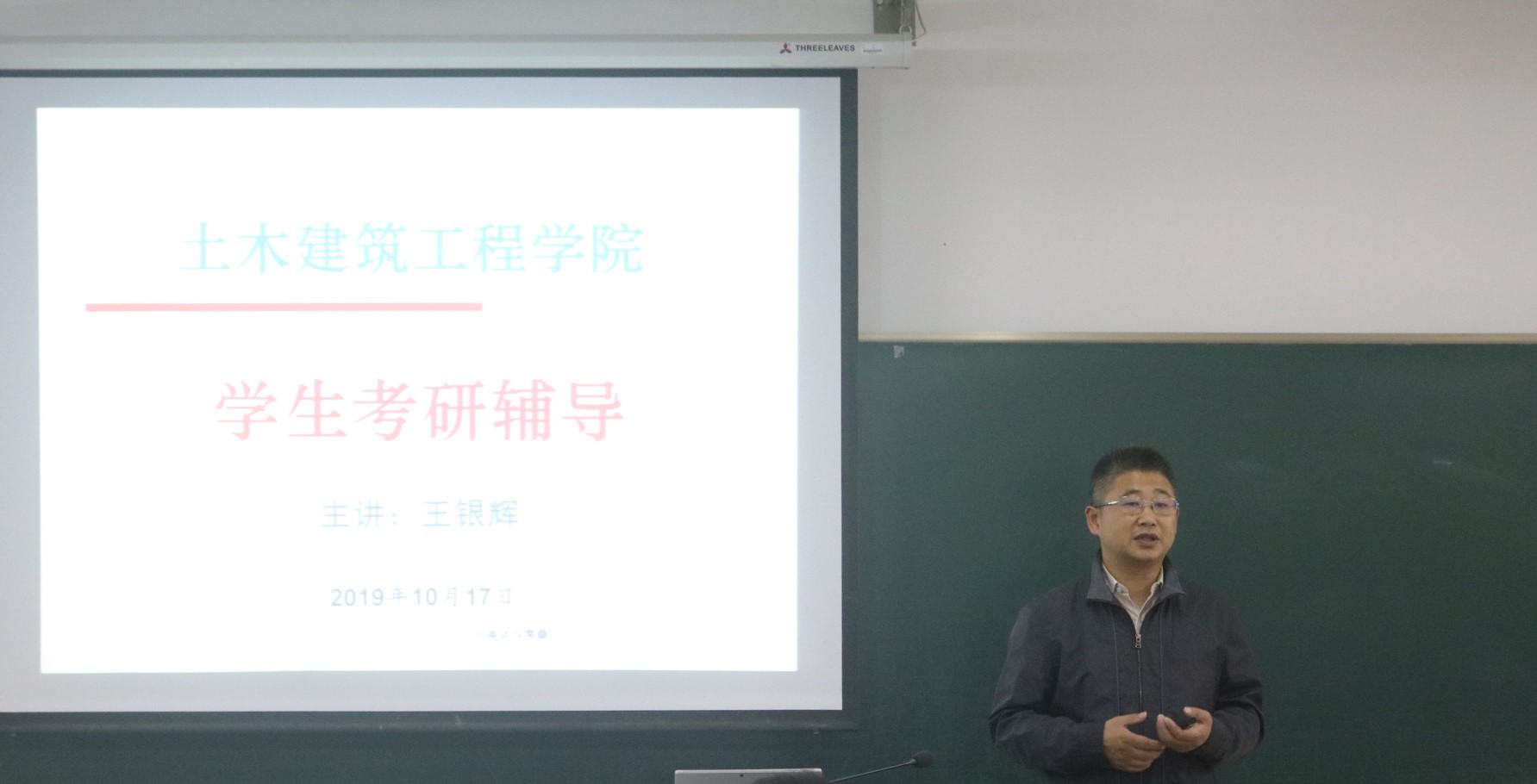 2019年10月17日下午6点,土建学院于SC308教室举办了考研培训讲座,主讲人为土建学院党委书记王银辉老师,有考研意向的学生踊跃参加了此次讲座。