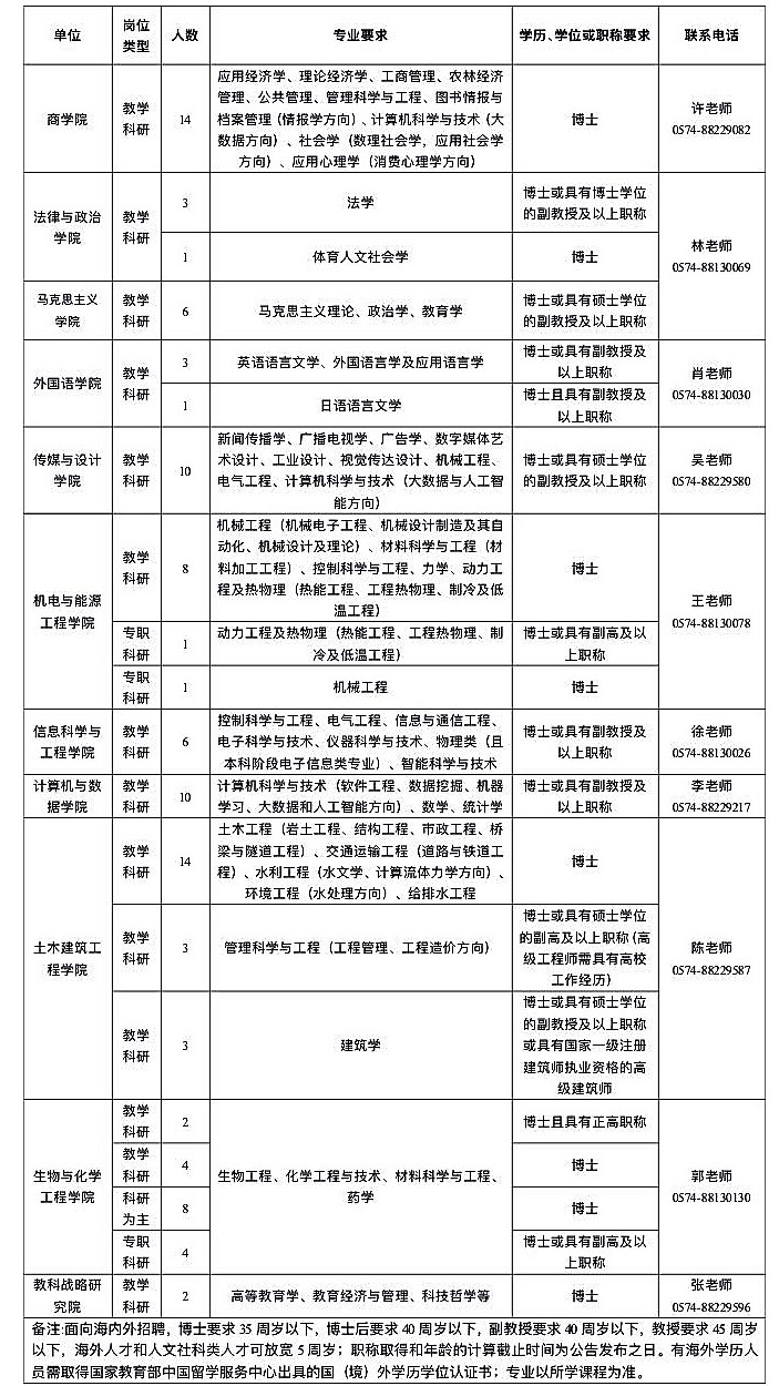 通讯地址:宁波市钱湖南路1号,浙江大学宁波理工学院人事处(行政楼411办公室)
